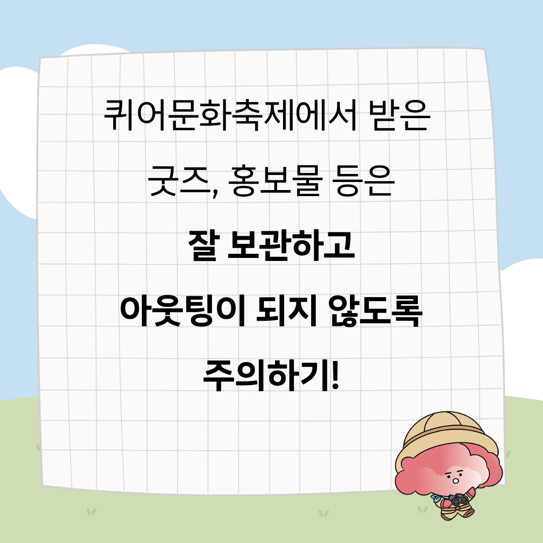 3. 굿즈, 홍보물 등은 잘 보관하고 아웃팅이 되지 않도록 주의해 주세요.